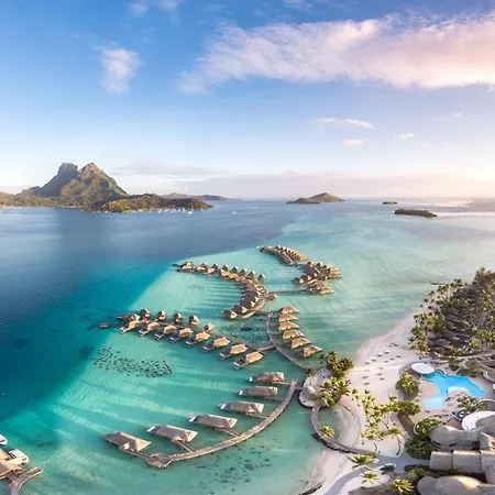 The St. Regis Bora Bora Resort features elegant villas that showcase hand-carved Polynesian details and panoramic lagoon views. Guests can dine at multiple onsite restaurants, including The Lagoon Restaurant. The resort's facilities include a luxury spa, private pools in selected accommodations, and various leisure activities like snorkeling and windsurfing. It is conveniently located just a 15-minute boat ride from Bora Bora Airport, providing easy access to local attractions.
