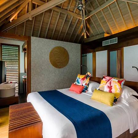 Intercontinental Bora Bora Le Moana Resort By Ihg features luxurious beachfront bungalows designed for an immersive Polynesian experience. Enjoy direct access to watersports including snorkeling and kayaking while indulging in dining options such as Noa Noa Terrace and Vini Vini Bar. The resort is strategically located just 11 km from Bora Bora Motu Mute Airport. Each bungalow is fitted with modern amenities for a comfortable stay, with picturesque views of the lagoon.