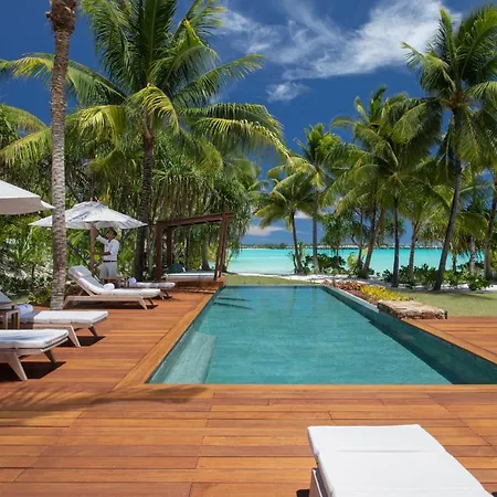 Conrad Bora Bora Nui is situated in a private cove, providing exclusive beachfront access with luxurious accommodations. The resort features villas with spacious living areas and high-end amenities, including a customizable pillow menu. There is a hilltop spa, multiple dining options, and an infinity pool overlooking the sea. This resort is located approximately a 20-minute boat ride from the Bora Bora Airport, with excellent connectivity for exploring local sites.